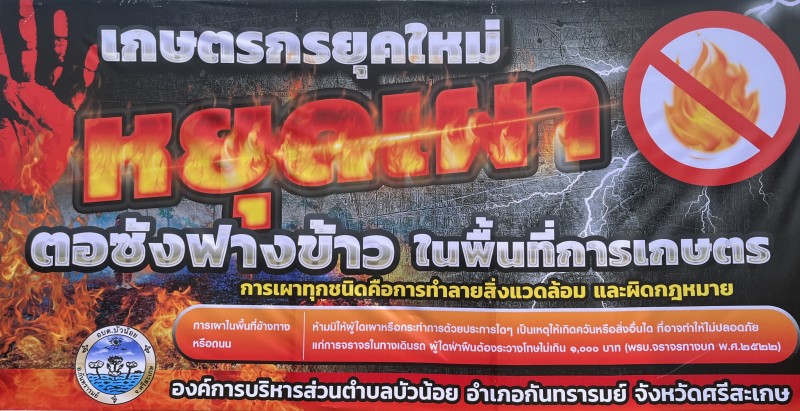 วันที่ 23 เมษายน 2567 อบต.บัวน้อย ได้ดำเนินการออกติดตั้งป้ายรณรงค์การหยุดเผาตอซังฟางข้าวในพื้นที่การเกษตร ในเขตพื้นที่ตำบลบัวน้อย เพื่อลดการทำลายสิ่งแวดล้อม