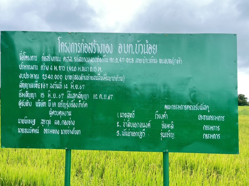 วันทึ่ 11 กันยายน 2567 เวลา 13.30 น. คณะกรรมการตรวจรับพัสดุตามโครงการก่อสร้างถนน คสล. รหัสทางหลวงท้องถิ่น ศก.ถ.47-028 สายบ้านเทิน-หนองหญ้าม้า ลงพื้นที่เพื่อตรวจรับงานฯ ตามโครงการถนน คสล. ดังกล่าว ซึ่งผลจากการลงพื้นที่ตรวจงานของคณะกรรมการตรวจงานจ้าง ปรากฎว่าถูกต้องตามระเบียบและตามแบบแปลน อบต.บัวน้อย กำหนด