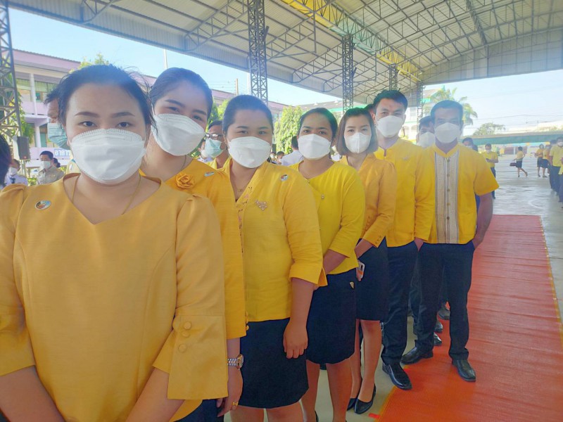 นางสุปราณี ไชยปัญญา ตำแหน่ง ปลัด อบต. ปฎิบัติหน้าที่นายก พร้อมด้วยพนักงานส่วนตำบล, พนักงานจ้าง อบต.บัวน้อย ร่วมกิจกรรมเนื่องในวันคล้ายวันพระบรมราชสมภพพระบาทสมเด็จพระบรมชนกาธิเบศร มหาภูมิพลอดุลยเดชมหาราช บรมนาถบพิตร วันชาติ และวันพ่อแห่งชาติ 5 ธันวาคม 2564 เวลา 08.30 น. ณ โดมโรงเรียนกันทรารมณ์ จังหวัดศรีสะเกษ