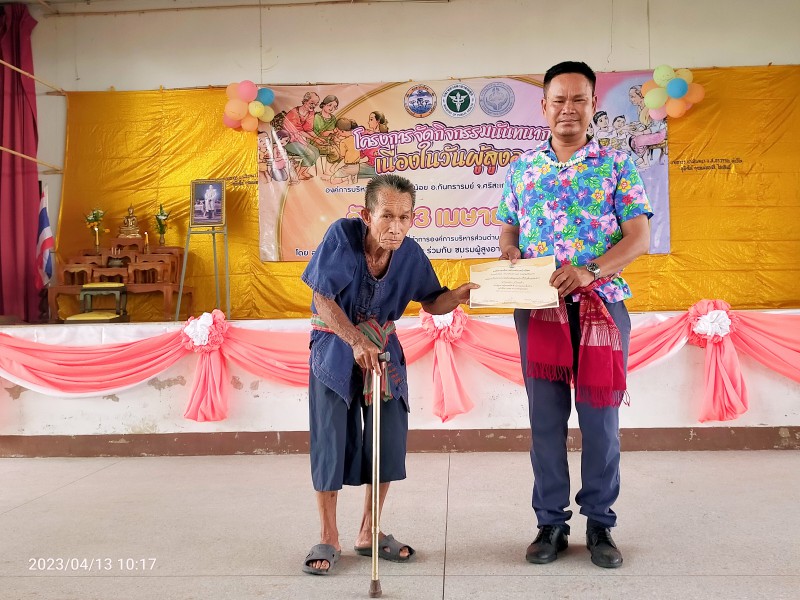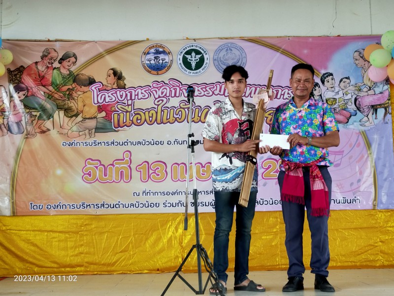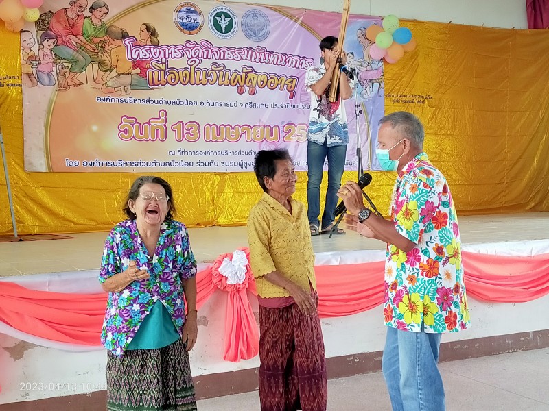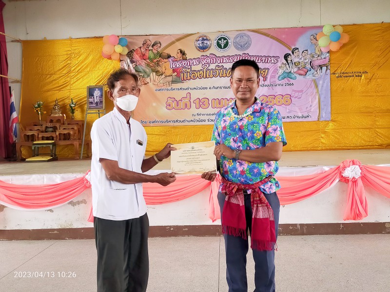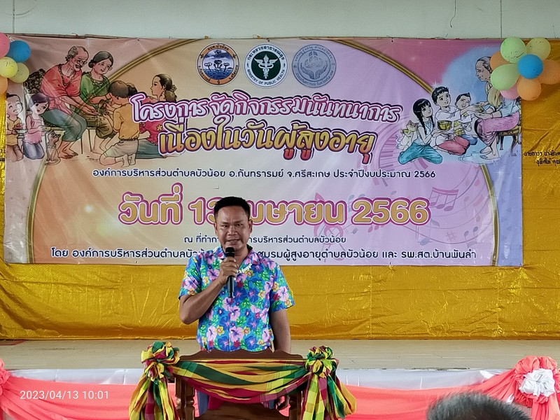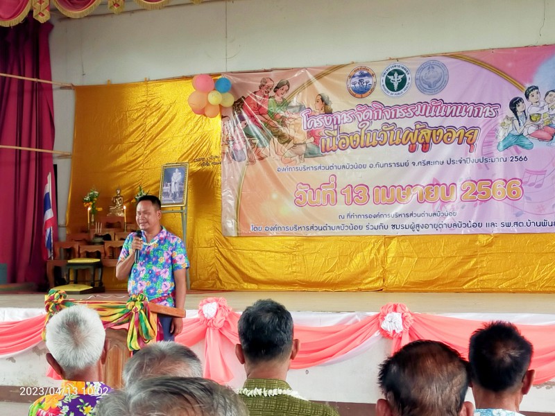 Gallery :: 13 เมษายน 2566 อบต.บัวน้อย นำโดยว่าที่ร้อยตรีณัฐภัทร คำชาลี นายกองค์การบริหารส่วนตำบลบัวน้อย ร่วมกับ โรงพยาบาลส่งเสริมสุขภาพตำบลบ้านพันลำ โดยมี นายสุวรรณ วะรงค์ ผู้อำนวยการโรงพยาบาลส่งเสริมสุขภาพตำบลบ้านพันลำ ได้ร่วมดำเนินโครงการจัดกิจกรรมวันผู้ส