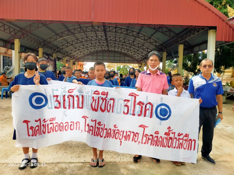 Gallery :: 13 มิถุนายน 2566 เวลา 09.00 น. เข้าร่วมกิจกรรมรณรงค์ไข้เลือดออกอาเซียน ณ วัดบ้านเทิน ต.บัวน้อย อ.กันทรารมย์ ร่วมกับโรงพยาบาลส่งเสริมสุขภาพชุมชนตำบลบ้านพันลำ